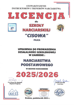 Szkoła Narciarska Cisowa działająca na terenie Stacji Narciarskiej Cisowa jako jedyna w regionie posiada licencję A+D SITN-PZN. Licencja Stowarzyszenia Instruktorów i Trenerów Polskiego Związku Narciarskiego zapewnia o najwyższym poziomie szkolenia zarówno indywidulanego jak i grupowego, prowadzonego według aktualnego programu nauczania opracowanego przez specjalistów.